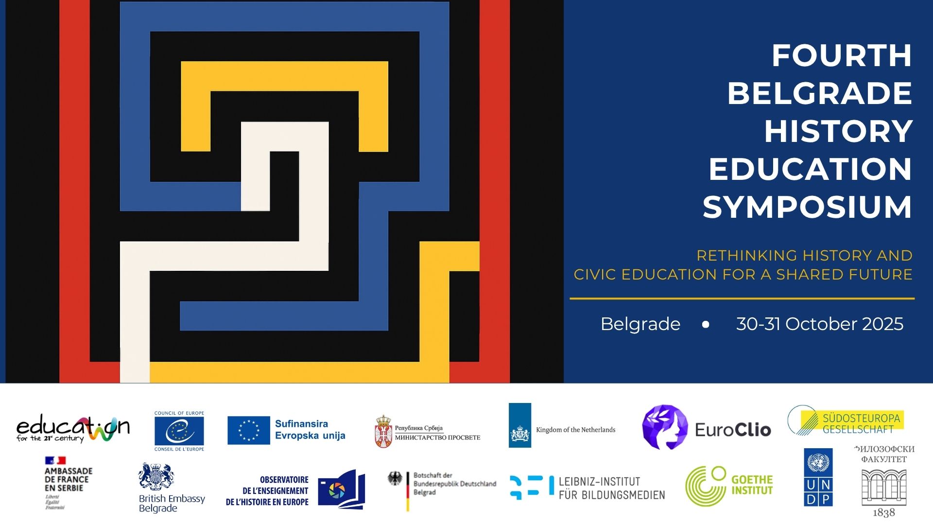 Beograd će ponovo biti mesto inspirativnog simpozijuma o nastavi istorije pod nazivom "Preispitivanje istorije i građanskog obrazovanja za zajedničku budućnost" koji će se održati 30 i 31. oktobra 2025. godine. Stručnjaci i eksperti iz različitih delova sveta okupiće se u našem gradu kako bi razmenili inovativne prakse u nastavi istorije. Već tri godine ovaj simpozijum predstavlja neizostavan događaj za sve koji se bave nastavom istorije. Simpozijum se odvija na različitim mestima u Beogradu, i redovno organizujemo i zanimljive posete za učesnike na kojima istovremeno ukazujemo na različite perspektive sagledavanja kulturno-istorijskog nasleđa.