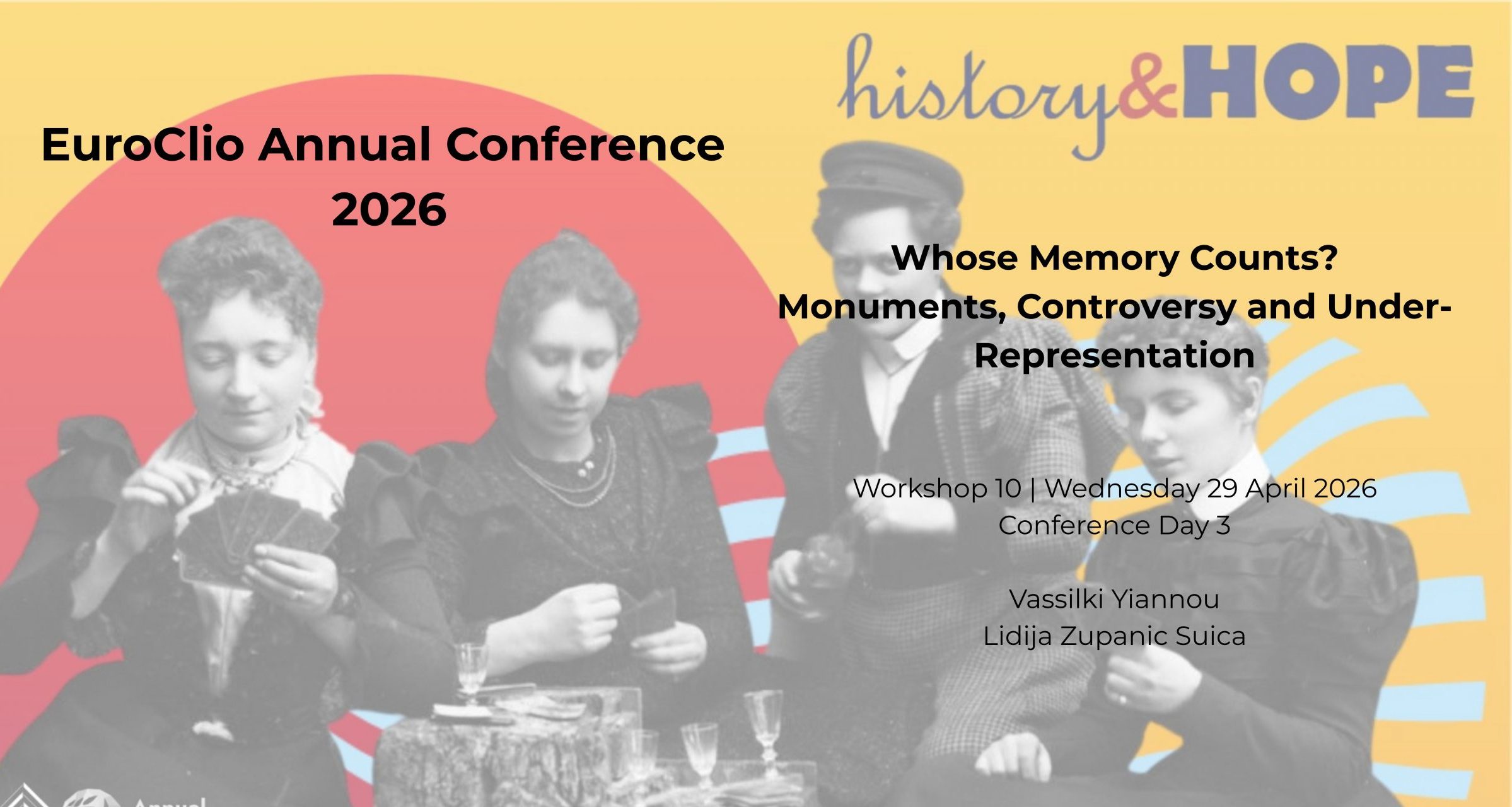 Na godišnjoj Euroklio konferenciji „Istorija i nada“ održaće se radionica "Čija se sećanja računaju? Spomenici, kontroverze i nedovoljna zastupljenost" Facilitatori su Vasilki Jianou i Lidija Županic Šuica. Radionica se bavi javnim spomenicima i zajednicama koje nisu dovoljno zastupljene u javnom prostoru, podstičući inkluzivno i demokratsko istraživanje istorijskog nasleđa