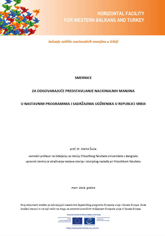 Pored praktičnih projekata i obrazovnih inicijativa, naši stručnjaci razvili su značajne publikacije koje doprinose unapređenju vidljivosti, zastupljenosti i zaštite nacionalnih manjina u obrazovanju u Srbiji. Zajednička inicijativa Saveta Evrope i Evropske unije – Program podrške Evropske unije i Saveta Evrope Zapadnom Balkanu i Turskoj (Horizontal Facility for the Western Balkans and Turkey) pokrenuta je sa ciljem da podrži korisnike u Jugoistočnoj Evropi i Turskoj u poštovanju standarda Saveta Evrope i zahteva Evropske unije u okviru procesa pristupanja. Aktivnosti u okviru projekta „Jačanje zaštite nacionalnih manjina u Srbiji“ zasnovane su na zaključcima i preporukama nadzornih tela Saveta Evrope, a jedan od ključnih ciljeva inicijative je podizanje svesti o nacionalnim manjinama, njihovim pravima i unapređivanje tolerancije. Inicijativa doprinosi jačanju kapaciteta nadležnih institucija da obezbede adekvatno predstavljanje nacionalnih manjina u obrazovanju i unaprede znanje šire javnosti o njihovim pravima i kulturi. Pristup analizi važećih nastavnih programa i obrazovnih standarda za osnovno i srednje obrazovanje zasnovan je na Okvirnoj konvenciji za zaštitu nacionalnih manjina (čl. 4, st. 23; čl. 6, st. 14; čl. 12, st. 15), Evropskoj povelji o regionalnim i manjinskim jezicima i njenom Obrazloženju (čl. 7, st. 3 i čl. 8, st. 1, t. g), kao i na ostalim preporukama Saveta Evrope, naročito u vezi sa nastavom istorije. U okviru ovog projekta, prof. dr Marko Šuica, vanredni profesor na Odeljenju za istoriju Filozofskog fakulteta Univerziteta u Beogradu , dao je ključni stručni doprinos razvoju i autorstvu publikacija koje predstavljaju praktične i teorijske alate za unapređenje inkluzivnog obrazovanja, jačanje međukulturnog razumevanja i očuvanje kulturnog i istorijskog nasleđa nacionalnih manjina u Srbiji. Među ovim publikacijama ističu se: